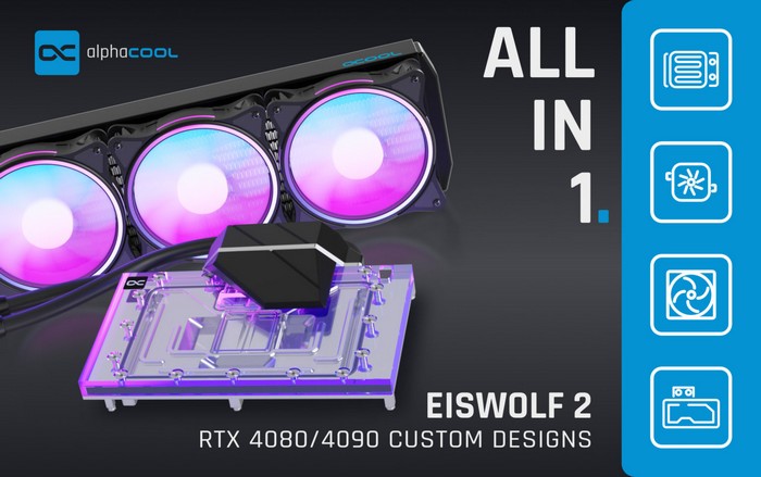 想要更好的性能,但没有搞过分体水冷怎么办?阿尔法酷(Alphacool)想到了这类用户。为此,今天发布了专为 RTX 40 系列定制的高端一体覆盖式水冷系统,叫 Eiswolf 2 AIO。