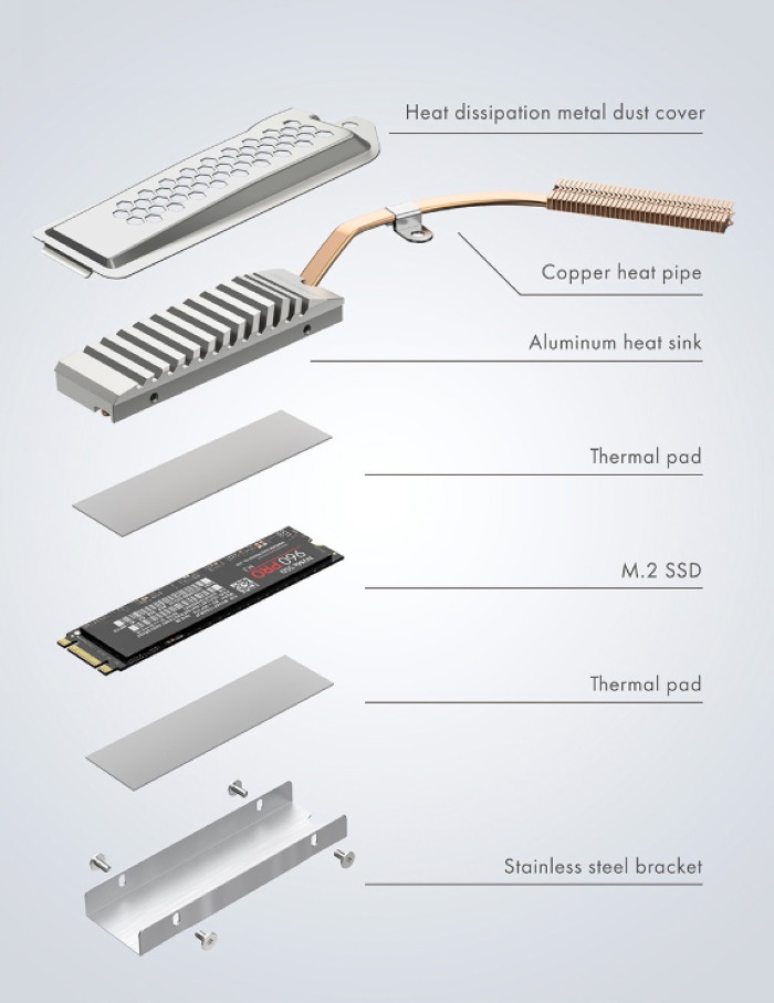 很好安装,兼容不同尺寸规格M.2 SSD,带有专用螺丝,导热相变以及盖板,散热片厚度不影像盖板,完美兼容PS5。