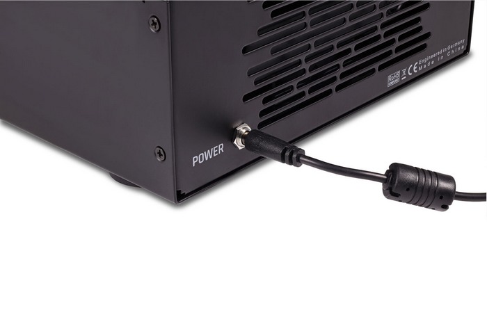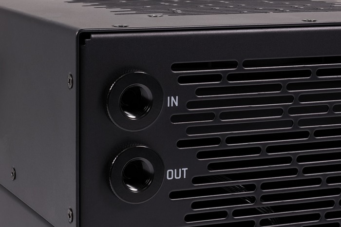 值得一提的是,前面有个屏幕,可以显示温度,水冷液高度等关键信息。背后还是外接输出、接入水冷管标准版G1/4孔,下面有个电源供电接口,因为内置水冷加压。