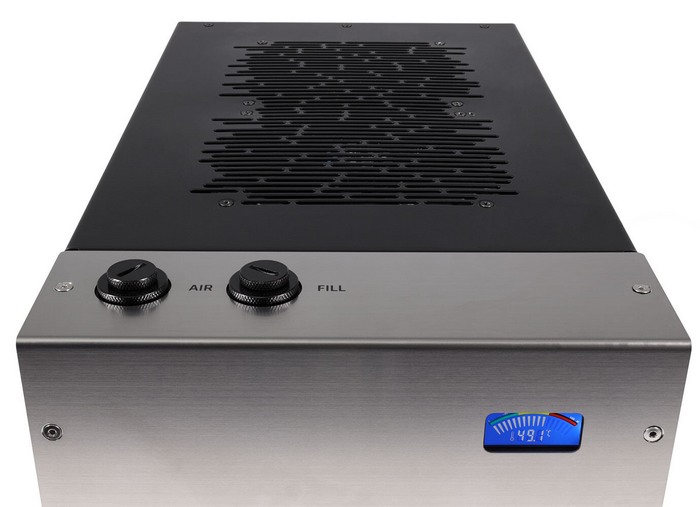 而现在,Alphacool(阿尔法酷)发布了一款比较方便装配的外置水冷系统——Orbiter 360 TS ,个头不大,方便外接,采用纯铜散热器,有两组120mm全紫铜材质打造的冷排,有三把Alphacool Core 120风扇,就像夹心饼干一样三把风扇和两组120mm冷排堆叠在一起。