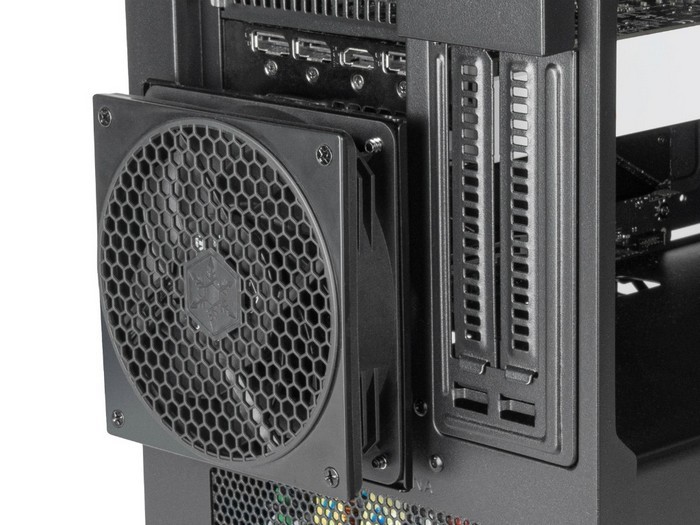 为此,银欣近日发布了一款有意思的套件,型号FDP02 (型号 SST-FDP02B),可以装在尾部显卡扩展区域,可以将热量抽出来。