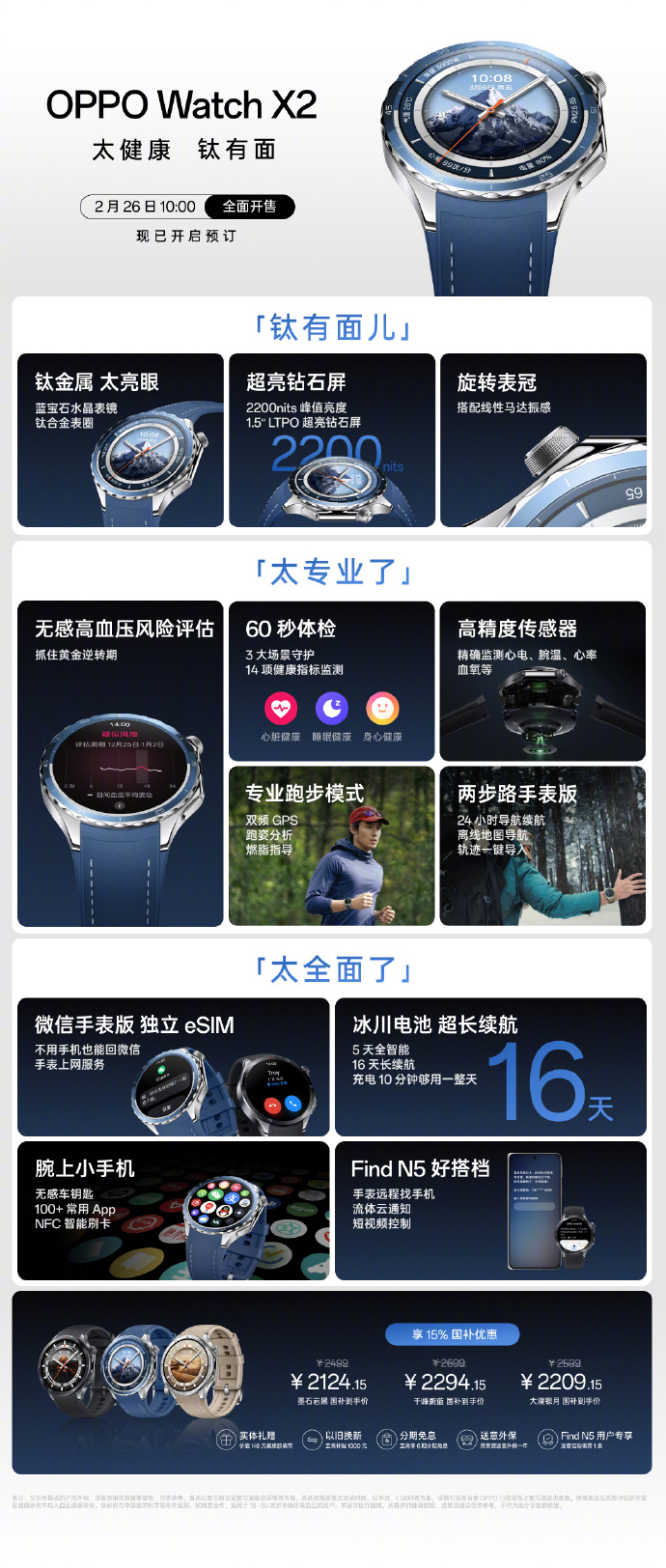 除了 Find N5,OPPO 还带来一款主打血压的健康智能手表——OPPO Watch X2。
