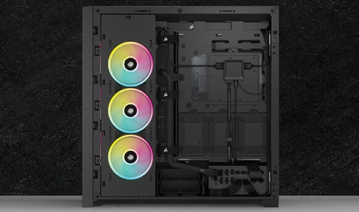 这个系列的产品具有高度简洁化、集中控制和强大的可玩性等特点。首发有无传统供电排线的RGB风扇(依靠触点)、水冷头、水箱和散热器等,都采用简单快速连接方案,总之就是能更简洁的走线,简化装机流程,并且通过iCUE系统更轻松快速的管理控制所有配件。