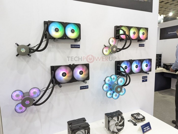 在 Computex 大会上,银欣展示了一个有意思的水冷散热器,叫IceMyst,水冷头可以像乐高一样堆积风扇模块。