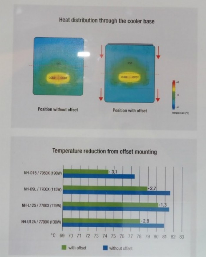 由于AMD锐龙处理器内部核心发热不集中,猫头鹰设计了这个方案,曾在月初的 Computex 展台新款“NH-D15”上看到过。