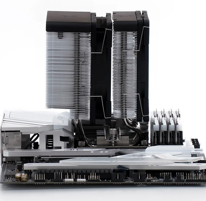 为了更好的兼容性,采用重心偏移、非对称式设计,不遮挡内存条,即使马甲再高的内存也没问题。而且,尾部散热片底部采用缺口设计,避免遮挡I/O挡板。