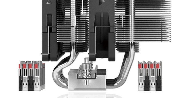 用料方面,配有6根6mm直径热管,加厚镀镍铜抛光底座,热管和鳍片,以及热管和底座之间都是回流焊工艺。