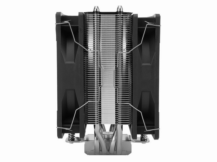 外观设计和其他 AX120 系列一样,超薄机身,黑色顶盖,四热管组合。个头不大,尺寸为宽 120 mm、深 120 mm、高 154 mm、重 545 g。虽然是双风扇,但整体紧凑,不干涉旁边内存扩展。