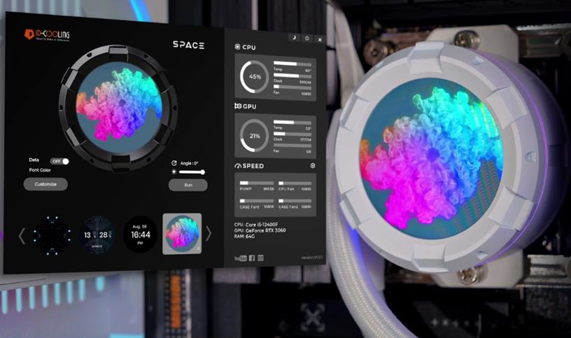 新的 SPACE 系列是 ID-COOLING 顶级型号,也是旗下首款带屏显水冷,颜值比 DASHFLOW 系列要高,但性能不如 DASHFLOW 系列,玩家可根据需求选择。