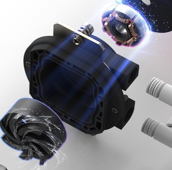 水冷头内采用全新 PWM 马达,转速最高2500rpm,比之前更安静,流量更大。