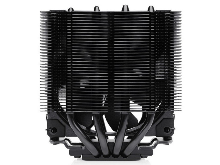 它有4根6mm 直径热管,加厚抛光镀镍底座,自带一把 NF-A9 PWM chromax.black 风扇,也是全黑化处理,风扇转速2,000rpm±10%,最高风量78.9m3/h、最高噪音22.8dBA,采用SSO2液压轴承,无故障运行寿命15万小时以上。