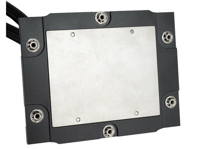 水冷头内采用3相6极电机,最高转速4000rpm±10%,泵扬程和噪音没说。搭配360mm水冷排,材质没说(默认铝),用了一根460mm长水冷管。