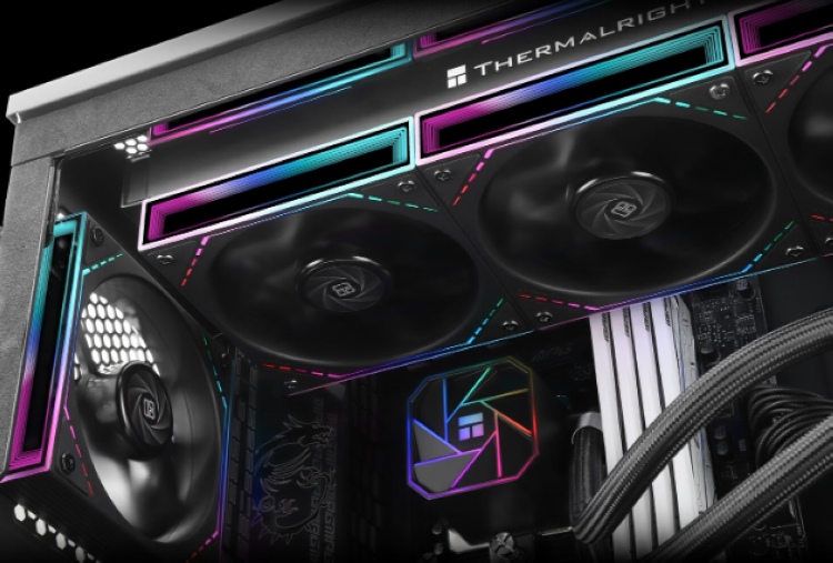 全黑配色,风扇顶部和两侧都有灯效,尤其是侧面,如下图:和冷排非常搭,也支持与板卡等背光同步。但我个人是很不喜欢这么多(乱)的RGB 灯效。