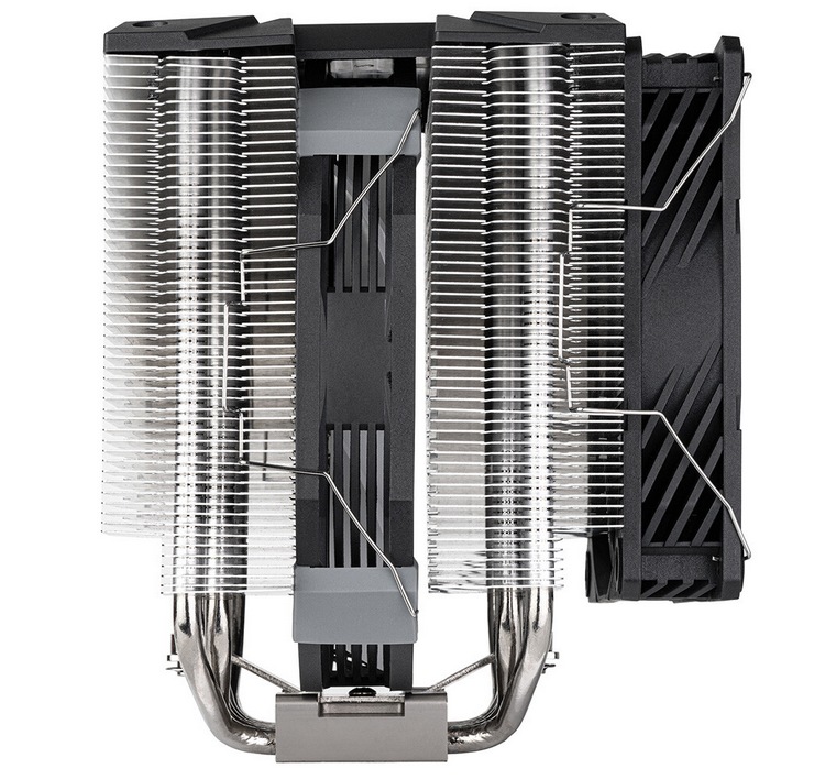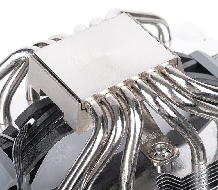 它属于紧凑型双塔,尺寸为 140 mm x 160 mm x 136 mm(宽 x 高 x 深),重 1.22 kg。配备6根6mm直径热管,全镀镍工艺,底座加厚抛光处理,热管和鳍片之间可能不是焊接的。