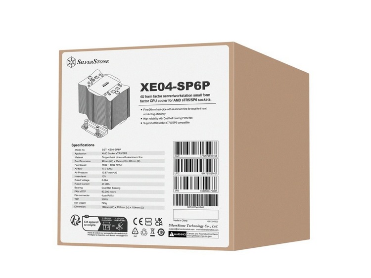 银欣发布一款小型单塔风冷散热器——XE04-SP6P,专为AMD新一代线程撕裂者和EPYC“霄龙”处理器。