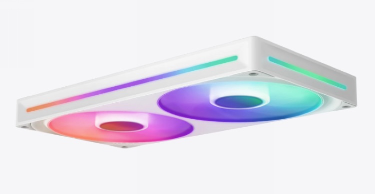 风扇扇叶和扇叶中心都有RGB灯效,有8颗可寻址灯珠,而且侧面也带有RGB灯效,可与主板等连接控制,支持背光同步技术。