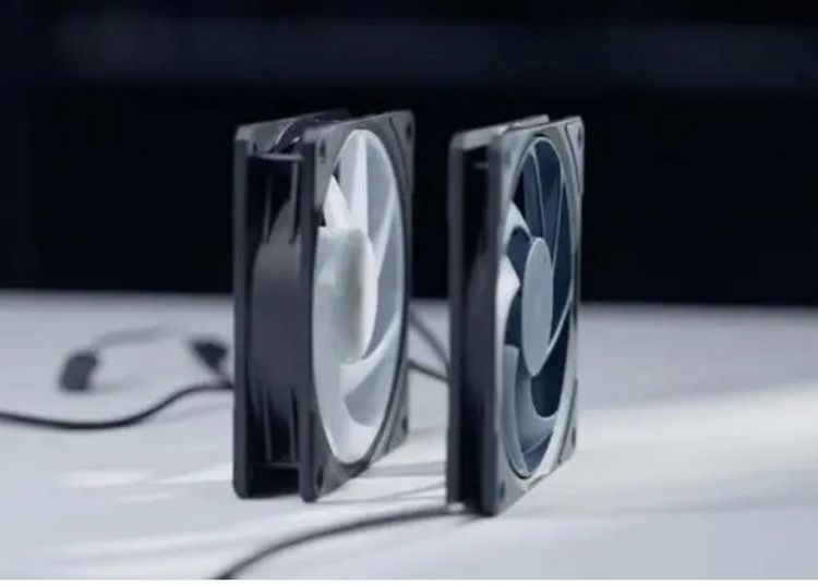 风格不变,相对简陋,首发只有黑色,120mm 标准尺寸,15mm 超薄机身,四角有缓震橡胶垫,扇叶连体设计,都是7刀扇叶,这种设计可以提升风压,噪音还低。此外,配备液压轴承,有回油设计,耐用、噪音低,且防尘,无故障运行寿命20万小时,5年质保。