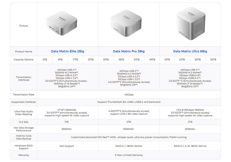 ORICO(奥睿科)发布了 Data Matrix 系列储存解决方案,为专业人士或团队,可以实时快速储存,容量大、速度快,是其首款用于后期制作的实时混合储存器。