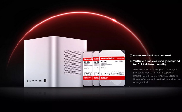 扩展都很丰富,Elite 版本也都不少,但不支持 Raid 0.1.JBOD 模式。值得一提的是,Data Matrix 系列还支持菊花链扩展,最多可扩展5组,相当于Ultra 最高可扩展至560TB。另外,所有版本的HDD机械硬盘都是用的西数 22TB/23TB 红盘,号称24小时/7天稳定运行。