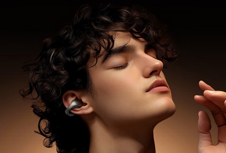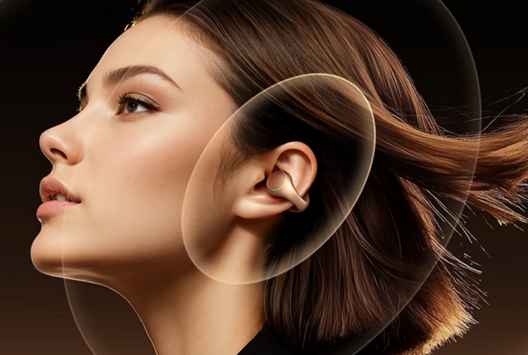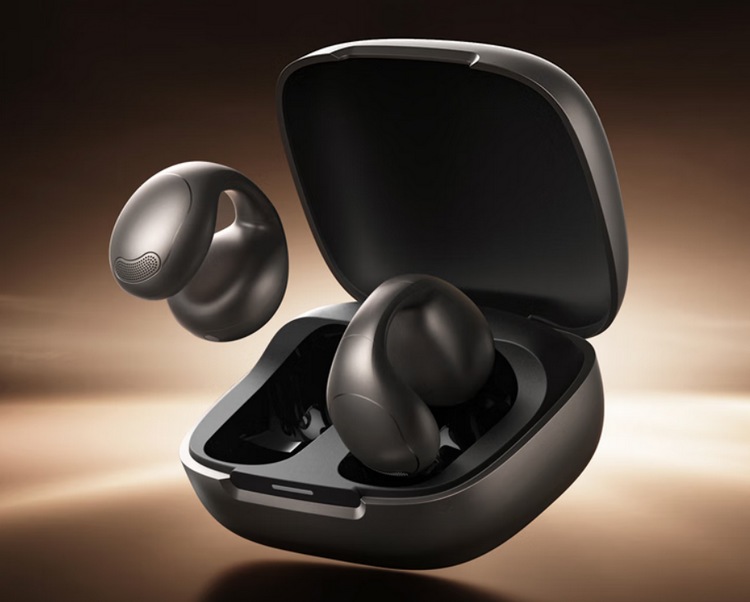 造型独特,采用弯月形造型设计,有记忆钛丝C桥,稳固贴合,号称零压感设计,表面还有高回弹TPU 亲肤材质,并首创可拆卸耳翼,适合各种用户,号称全天佩戴舒适。它有幽谷灰和沙漠金两个配色,后者和iPone 16 Pro 同配色,更据辨识度。