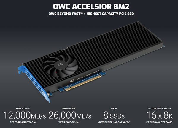 苹果储存周边大厂OWC,今天发布了一款顶级PCIe Gen 4 SSD AIC扩展卡,宣称是目前市场上最快扩展卡,连读可达26GB/s。