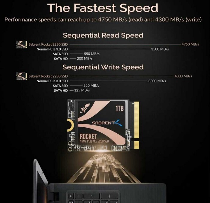 日前,Sabrent 推出了全新 M.2 2230尺寸 Rocket SSD 系列固态硬盘,有 256GB/512GB和1TB 三种容量,适合Steam Deck 等设备升级。