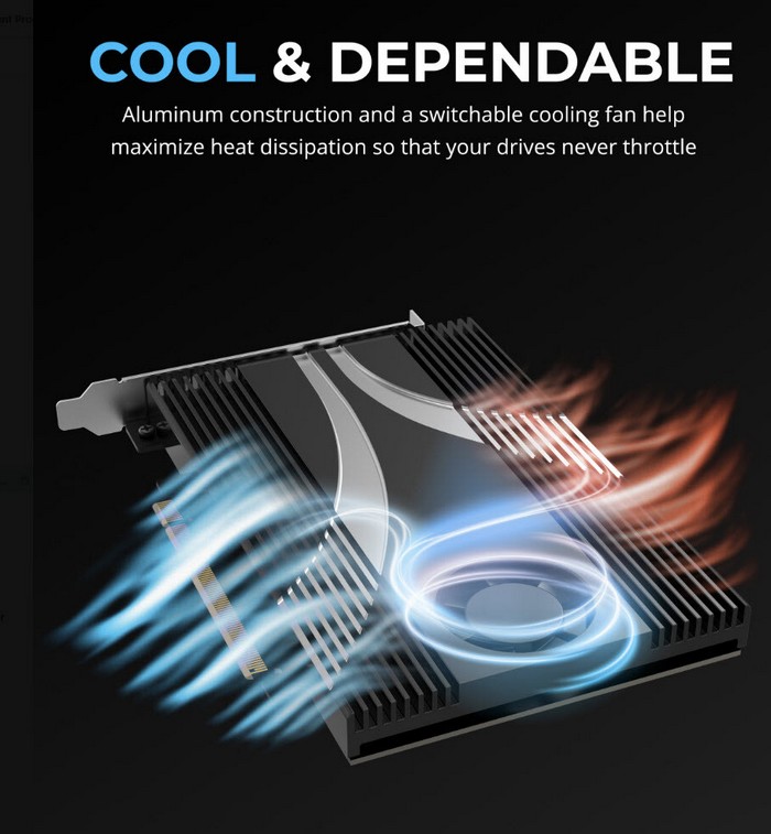 外形酷似超薄显卡或声卡,带风扇,底部进风,然后从上面排出,对于高性能扩展卡而言很有必要。另外,每一路都有指示灯,可以实时了解运行状态。
