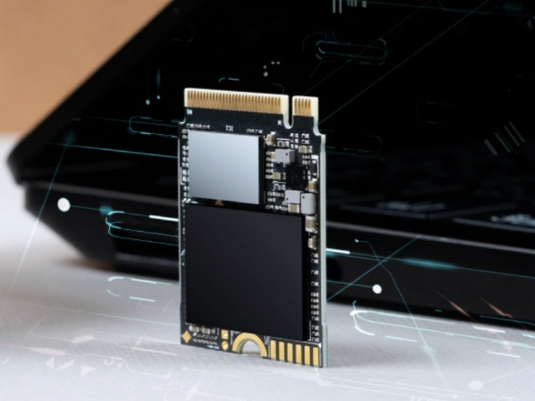 基于 M.2 2230 尺寸规格,尺寸为:22mm x 30mm x 2.23mm、重4g。表面没有散热片,由于尺寸限制,主板上安排的满满当当的。主控未知,采用3D NAND 颗粒(具体类型没说),有 512GB / 1TB 两种容量。