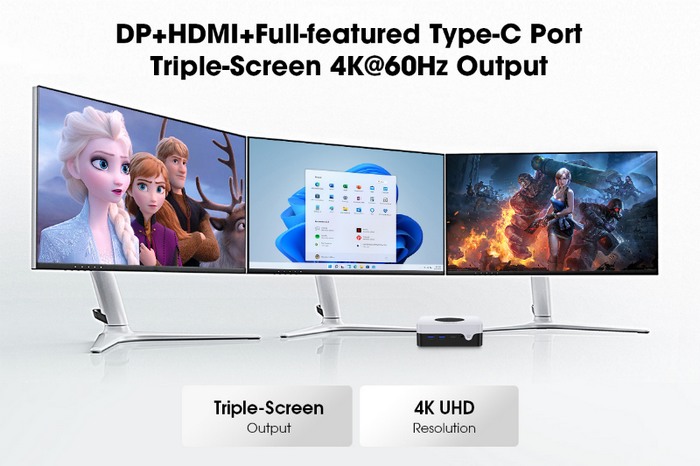 其他方面,支持WIFI 6(AMD RZ608)和蓝牙,扩展丰富包括:一个HDMI2.0、DisplayPort、全功能USB-C、4个USB3.0x4、千兆LAN、3.5mm耳麦插孔等。它可以同时外接三台显示器,而且是4K / 60fps。