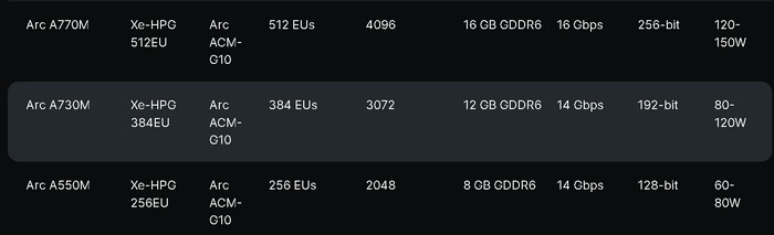 Intel Core i7-12700H + 12 GB 显存 Arc 730M 锐炫独显