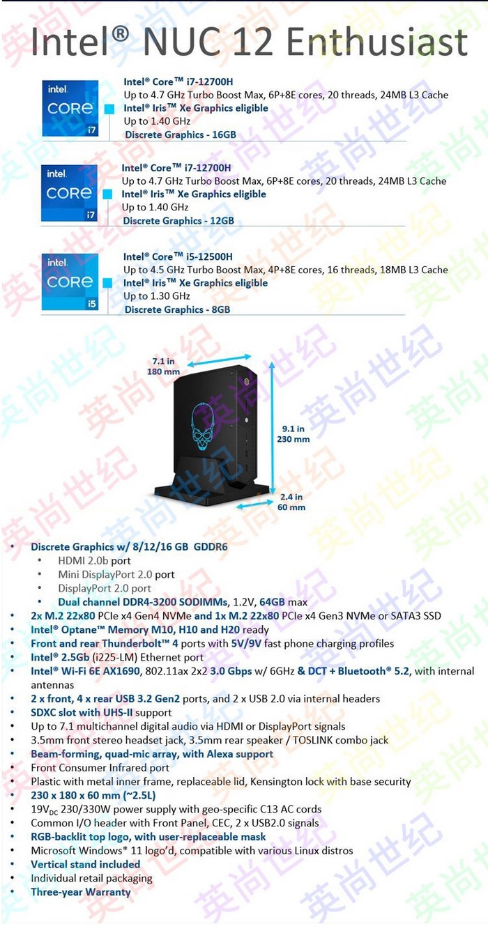 外观部分就不赘述了,可关注我们之前的报道,接下来我们只聊之前没有报道过的,先来看看核心配置。“巨蛇峡谷”NUC有三个配置,如下: