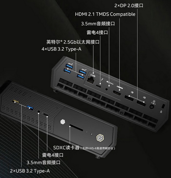 “蝰蛇峡谷”的尾部扩展依旧变态,至少有6个USB 3.2 TYPE-A 、双Thunderbolt 4 、单HDMI 2.1、双DP 2.0、2.5G千兆LAN、以及3.5mm耳机插口和读卡器(UHS-II)等。