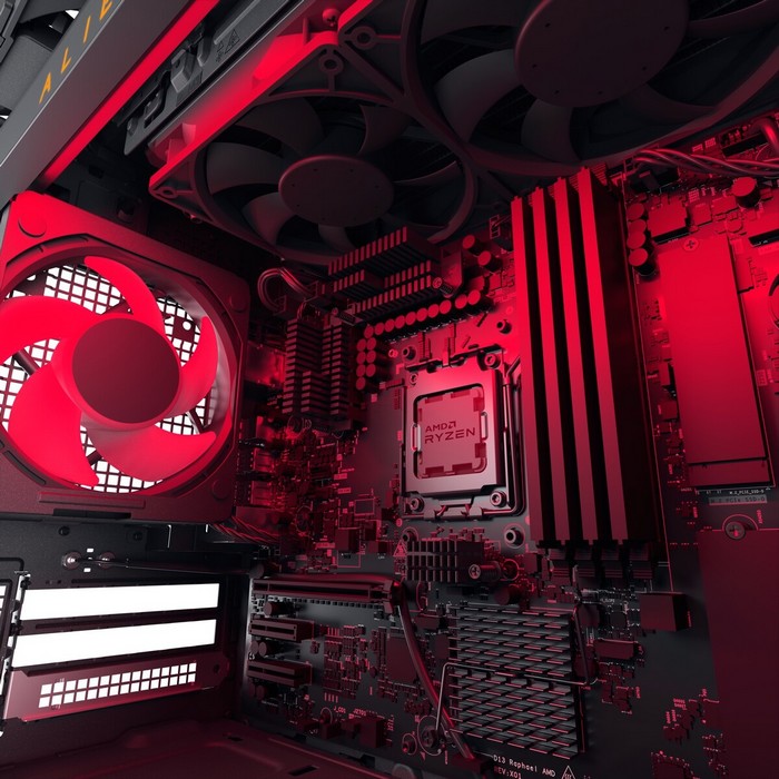 最后,根据配置不同,处理器用风冷或水冷压制(具体尺寸未知,应该会提供240mm或280mm),电源功率从750W至1350瓦不等,主板是外星人OEM定制 B650 主板。