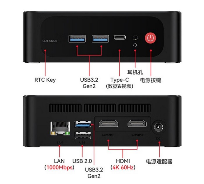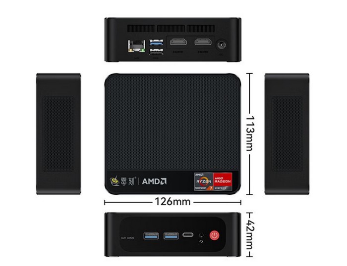 其他方面,零刻 SER5 Pro 支持 WiFi 6 无线和蓝牙5.2,扩展包括:前置UBS-C、USB-A和耳麦接口,后置有线网口、USB-A和HDMI接口。