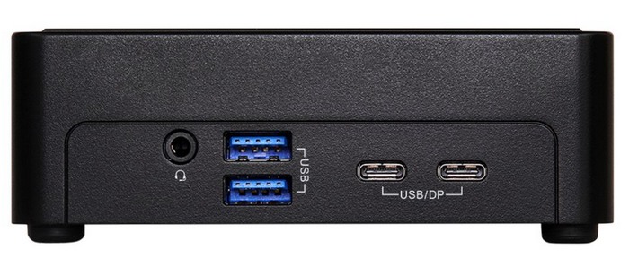 整体机身比较规整,不是登机箱的模具,而是常规四四方方很像传统NUC的设计。这款个头更小巧一些,尺寸为117.5 x 110 x 38mm,约900克,因为它没有2.5英寸硬盘仓位,如果需要SATA 2.5英寸SSD/HDD扩展的话,建议选择更强的 NUC 1300 BOX 那款。