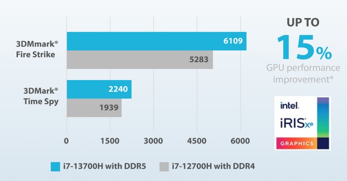 内升级第13代酷睿H系列处理器(酷睿i5-13500H/i7-13700H),提供双DDR5-4800MHz内存槽,以及双PCIe 4.0 M.2和2.5英寸硬盘仓位,没有独显依靠 Iris Xe 锐炬核显。官方表示,新款的CPU性能较老款提升约10%,能满足重负载办公需求。