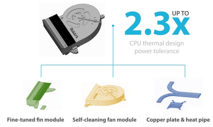 内升级了更好的散热器,散热鳍片面积增加,号称提供台式机级散热性能。另外,风扇支持自清洁除灰功能,支持智能温控系统,机身两侧和尾部都是散热孔,能长时间运行。