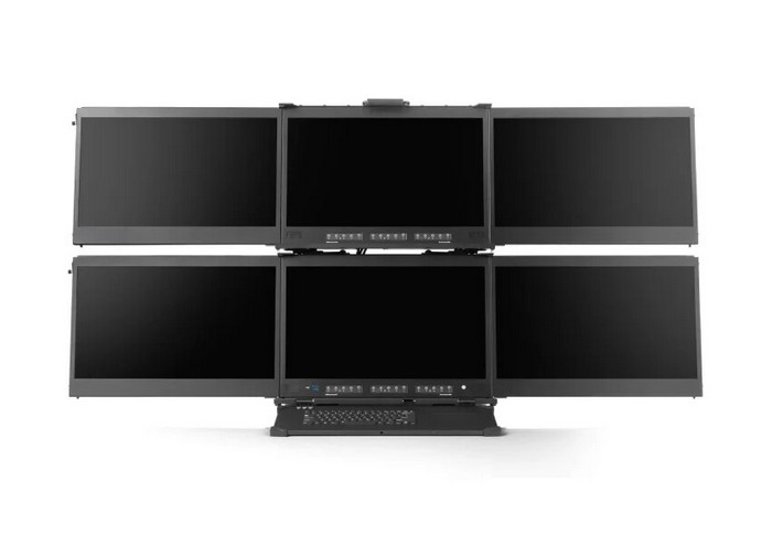 最大亮点是屏幕,有6块可收纳的24英寸4K屏,具体规格未透露,表示色彩优秀,这种方案适合多任务需求,比如监控、直播或……另外,尾部有双万兆LAN等丰富扩展~