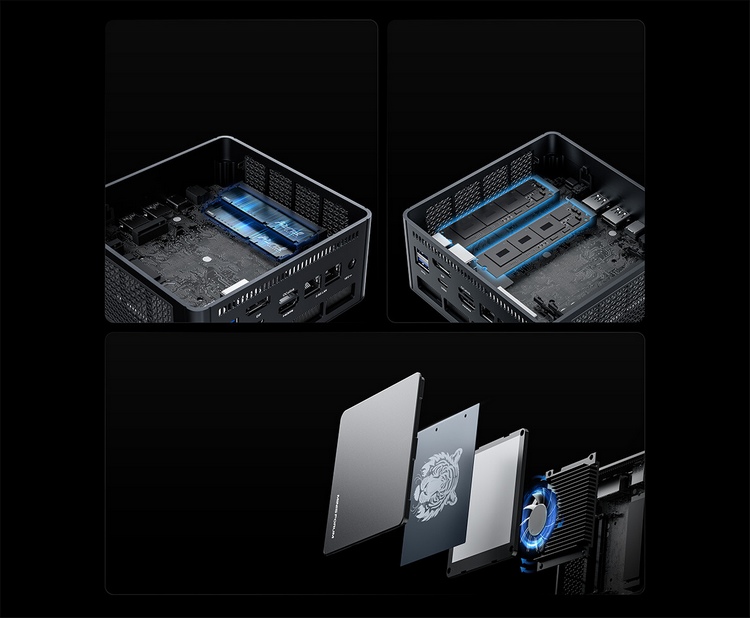 核心配置上,内搭载AMD Ryzen 7 7840HS 处理器(8核/16线程,最高可加速紫和5.1GHz),集成AMD Radeon 780M 核显,有两条DDR5 5600MHz 内存槽(最高支持96GB),储存扩展包括双 M.2 2280 PCIe 4.0 SSD 扩展插槽。值得一提的是,它还附赠了M.2转Ouclink的转接卡,可以外接独显,大幅提升游戏性能。
