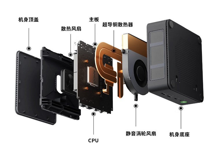 常规方盒子造型,主动散热,采用双风扇散热,配备超导双涡轮散热系统,CPU温度可以对比单风扇温度低6度,硬盘温度对比单风扇低6度,机身表面温度低2度左右。