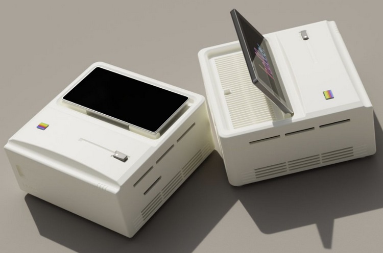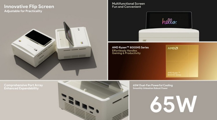 外观独特,基于苹果1984年的 Mac 主机,顶部还有个可翻转屏幕,可以显示运行状态,自定义设置画面,能显示时间等。