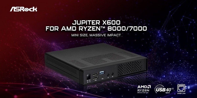 除了多款游戏屏,华擎还会在 Computex 上带来强大的 Jupiter X600 系列迷你主机,紧凑小巧,内采用 AMD Ryzen 8000/7000 系列处理器,扩展丰富。