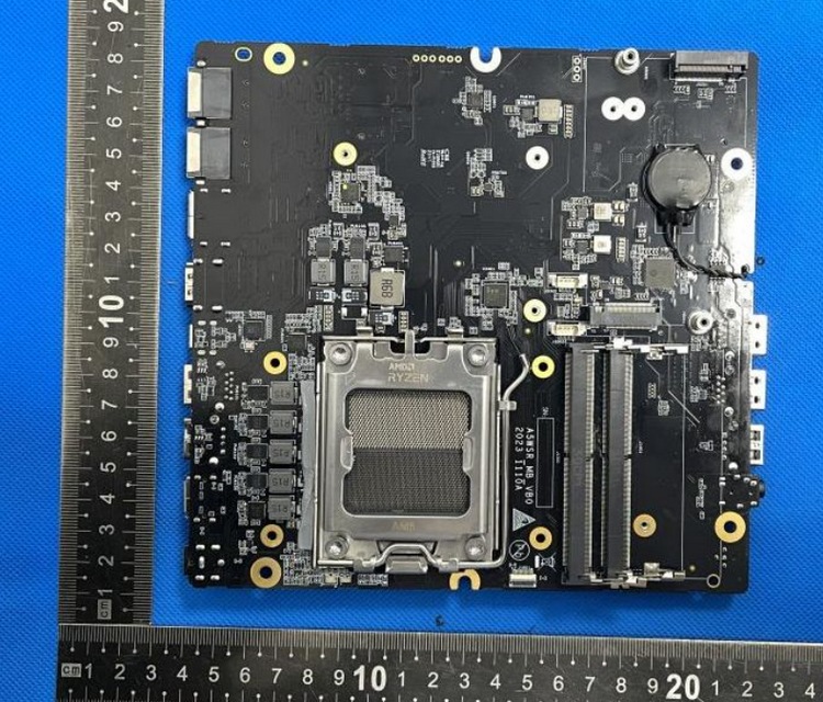 内采用定制主板,提供 AMD AM5 插槽,可选 AMD Ryzen 5 7600、Ryzen 5 8600G 和 Ryzen 7 8700G 处理器,注意只支持 65 瓦处理器。