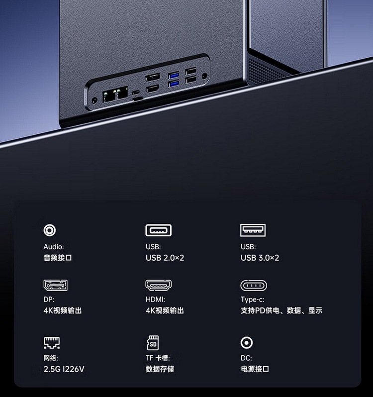 扩展不变,包括双2.5G千兆LAN、一个USB 3.2 Gen 2 Type-C、2 个 USB 3.0 Type-A、2 个 USB 2.0 Type-A、1 个 HDMI、1 个 DisplayPort、耳麦插孔和读卡器等。