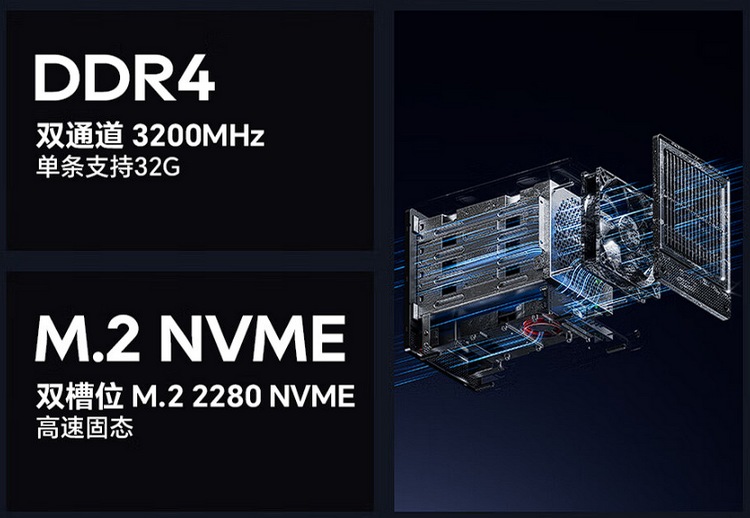 此外,这个版本还有双通道DDR4 3200MHz 内存(SO-DIMM内存槽,最高支持64GB),而且是双PCIe NVMe SSD 扩展(最高支持8TB),而之前的版本是单通道内存和单M.2 SSD扩展。