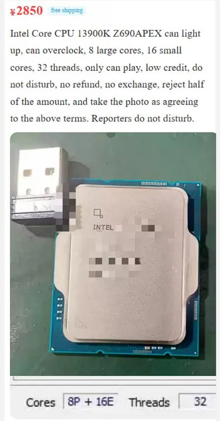 刚刚,VC报道称,已经玩家将测试版酷睿i9-13900K摆上货架,售价2850元,声称这颗Core i9-13900K 可在华硕 Z690 ROG APEX 主板上运行,甚至支持超频。