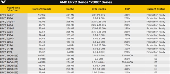 据外媒VC消息,爆料者YuuKi_AnS提前曝光了Zen4霄龙家族详细型号、规格,奇怪的是改成了霄龙9000系列,直接跳过了8系。