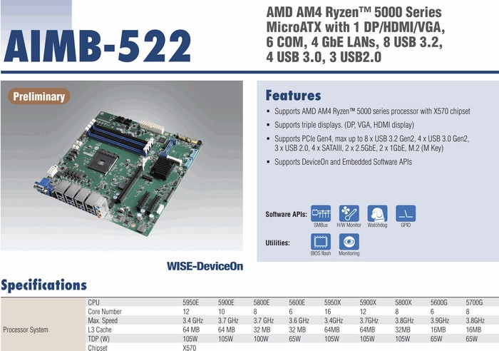 看后缀不难发现,它属于嵌入式系列,针对工业平台。目前研华已经推出了搭载锐龙5000E系列的主板AIMB-52。