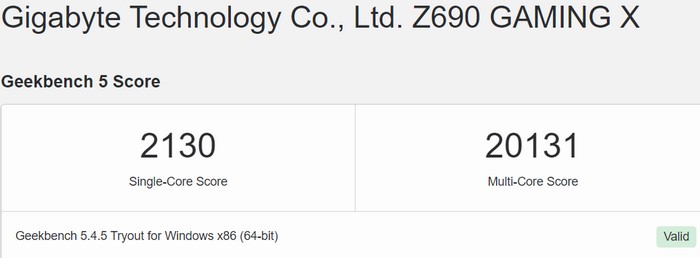 至于成绩,单核测试得分2130分,多核测试得分20131,这个成绩肯定比 16 核/24 线程的 i9-12900高。不幸的是,Geekbench 没有 i9-12900 的官方排名。