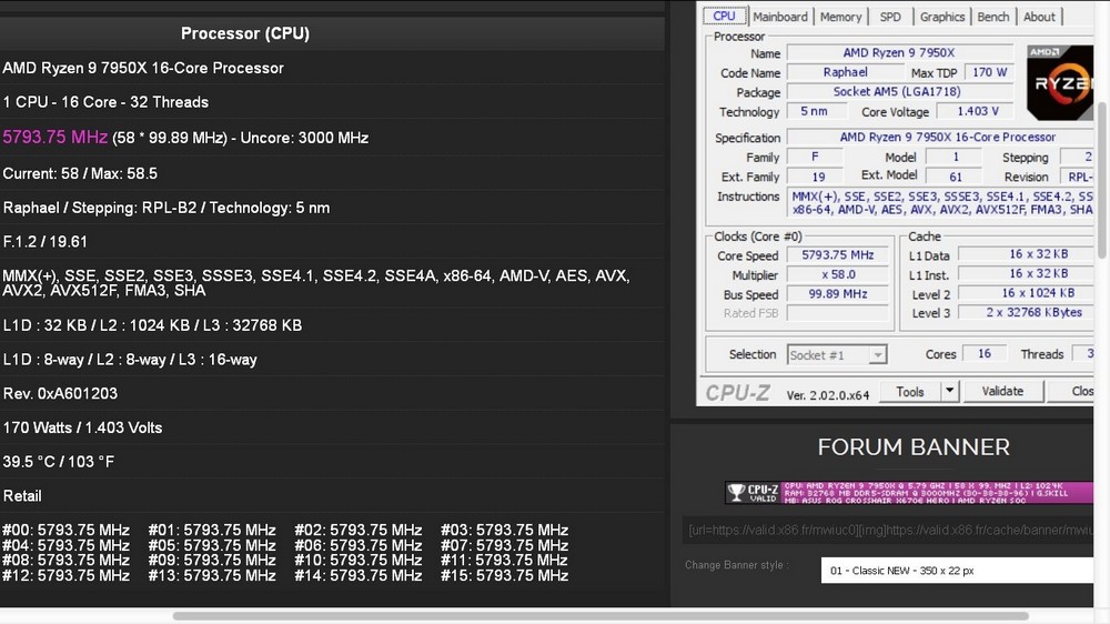 知名爆料者 TUM_APISAK 发现了一颗通过CPU-Z认证的 AMD Ryzen 9 7950X 处理器,居然全部 16 核都超频到了 5.80 GHz 。